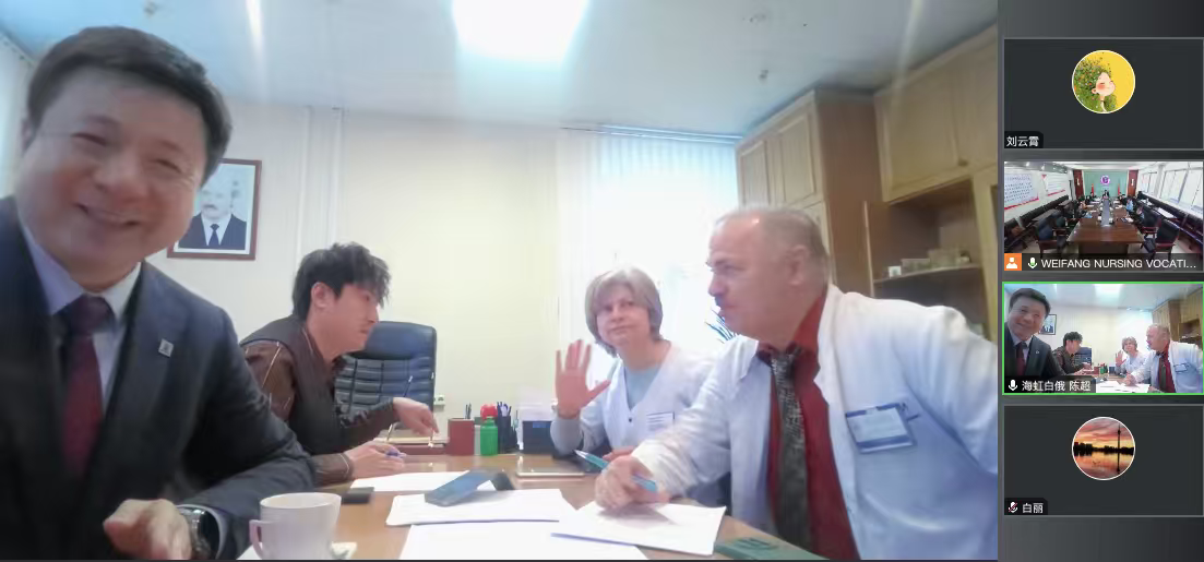 近日,潍坊护理职业学院联合白俄罗斯共和国康复中心、白俄罗斯海虹医疗科技有限公司召开“白俄罗斯—岐黄学堂”工作推进会暨白俄罗斯中医药需求研讨会,双方就“白俄罗斯—岐黄学堂”中医适宜技术海外推广交流实质性建设展开深度磋商,标志着双方在中医药职业教育海外推广迈入落地实施新阶段。白俄罗斯共和国康复中心院长帕采耶夫•亚历山大、白俄罗斯共和国康复中心慢性疼痛中心主任苏珊娜•伊琳娜、潍坊护理职业学院党委委员苗光盛参加会议。会议由潍坊护理职业学院中医系负责人郑硕主持,双方相关部门负责人及核心骨干成员参会。