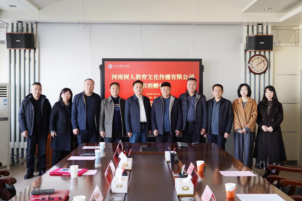 12月10日下午,学院在五楼会议室举行图书捐赠仪式,河南树人教育文化传播有限公司向我院捐赠价值10万元的专业图书,以实际行动支持学校教育事业发展,助力师生学术研究与专业能力提升。