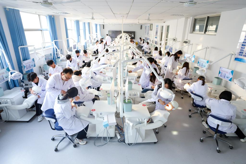 作为学校重点打造的特色专业集群,两大专业群始终紧扣潍坊市“9+3+N”重点产业链中医养健康产业发展导向,以产业需求为锚点,构建了全方位、多层次的人才培养与社会服务体系。其中,中医药健康服务专业群是此次入选名单中唯一的中医药类专业群,依托全国中医药康养护产教融合共同体,创新推行“课堂进临床”沉浸式教学模式,建立校企人员“双向流动”机制,组建高水平“双师型”教师队伍。该专业群以“五运六气”为特色品牌,依托两大省级研究与传承推广基地,近三年累计为区域输送综合型技术技能人才1500余人,毕业生80%以上留潍就业,就业率保持98%以上;同时联动中医“五进”志愿服务,开展义诊、科普等惠民活动300余场,服务群众15万余人次,为潍坊“15分钟中医药健康服务圈”建设提供了坚实支撑。口腔健康服务专业群为山东省高等职业院校高水平专业群,专业群聚焦口腔健康服务产业链关键环节,坚持面向山东、根植潍坊,依托校内潍坊市口腔解剖生理重点实验室、附属潍坊牙科医院,打造“教学、科研、临床”一体化发展、实体化运作的口腔产教科综合体,建成具有实践教学、社会培训、真实生产、技术服务于一体的区域产教融合实践中心,综合体年门诊量超2万人次。近年来,专业群毕业生就业率保持在95%以上,对口就业率达85%,为潍坊及周边地区口腔健康服务机构输送了大量骨干人才,有效填补了区域口腔健康服务人才缺口,得到用人单位的广泛好评。