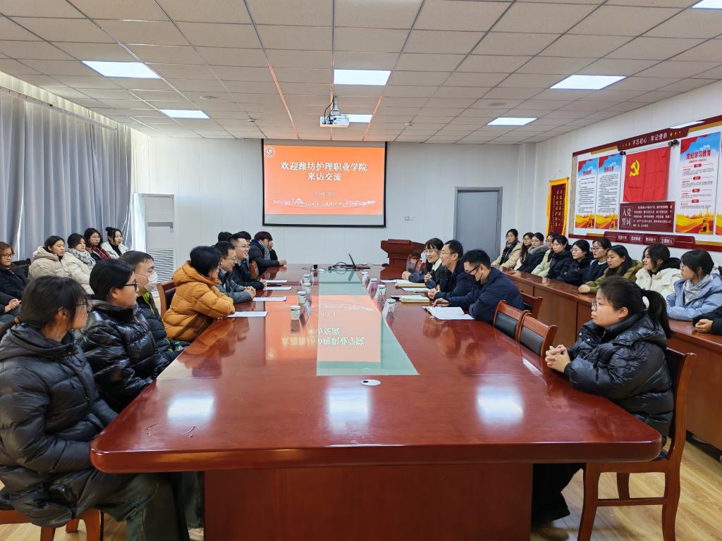 座谈会上,马健平详细介绍了山东第二医科大学70余年办学底蕴与护理专业建设成果。作为高水平医科大学,已构建了完整医学教育体系,护理专业获评国家一流本科专业。孙培伟对山二医的接待表示感谢,并介绍了我校护理高技能人才培养的基本情况。双方达成深化校际协作、共享资源、共研培养方案的共识。