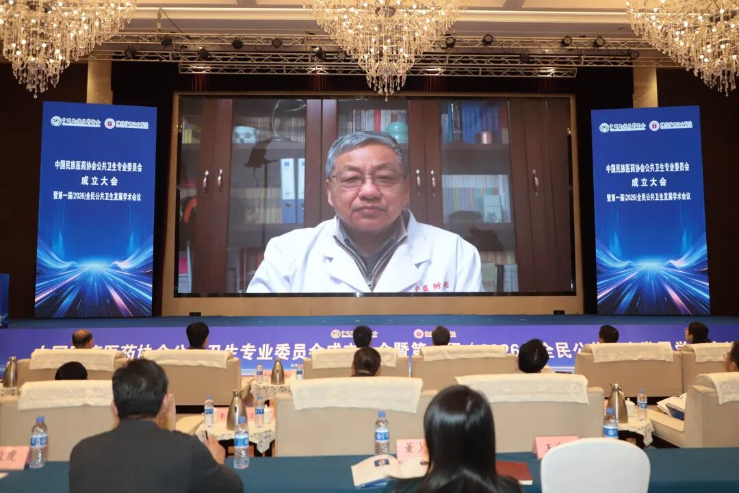 国医大师、专委会名誉主席王新陆线上致辞。他表示,公共卫生专业委员会的成立,是公共卫生与民族医药融合发展的崭新起点。他希望,专委会要坚守人民健康至上,立足全生命周期健康保障,推动民族医药深度融入公共卫生各领域,让民族医药为全民健康保驾护航;充分发挥桥梁纽带作用,广泛凝聚行业智慧,整合产学研用优质资源,促进民族医药的传承创新、技术研发与成果转化,形成发展合力;坚持创新驱动发展,深化民族医药与现代公共卫生的融合发展,结合现代公共卫生发展理念与技术手段,为构建中国特色公共卫生体系注入民族医药的智慧与力量。