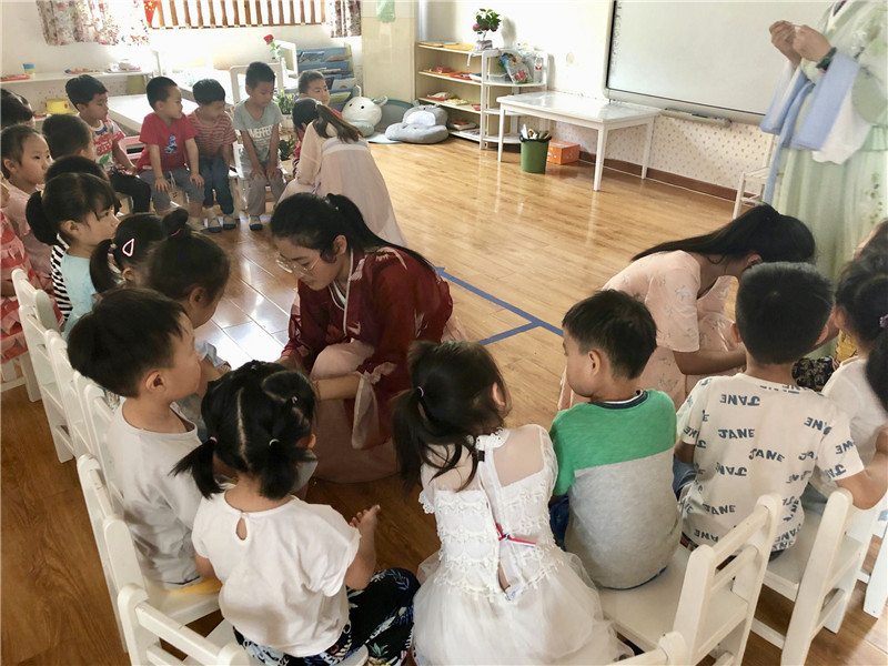 学习传统文化,加强“中国梦”爱国主义教育,要从儿童抓起,为此,学院传统服饰与文化研究会的成员们走进幼儿园,以“话端午诗会,送爱心彩绳”的活动形式向小朋友们讲解纪念屈原、龙舟竞渡、挂艾草和吃粽子等端午习俗。“五月五,过端午,赛龙舟,敲大鼓……”教小朋友朗朗上口的儿歌《端午谣》,并为小朋友送去了编织的五色彩绳。通过丰富多彩的活动,使孩子们对端午节的来历、习俗以及浓厚的文化氛围有了更深入的认识,有利于中国传统文化的传承与发扬。