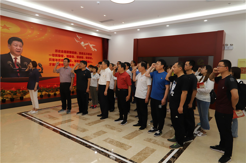 为进一步加强党组织建设,强化党员党性修养,牢记革命历史,传承红色基因,在建党98周年来临之际,潍坊校区教管中心党总支全体党员、潍坊校区“双报到”对接单位北王社区部分党支部成员一行40余人于6月15日来到胶东革命纪念馆开展“不忘初心、牢记使命”主题教育。潍坊护理职业学院纪委书记王坤法参加本次活动。